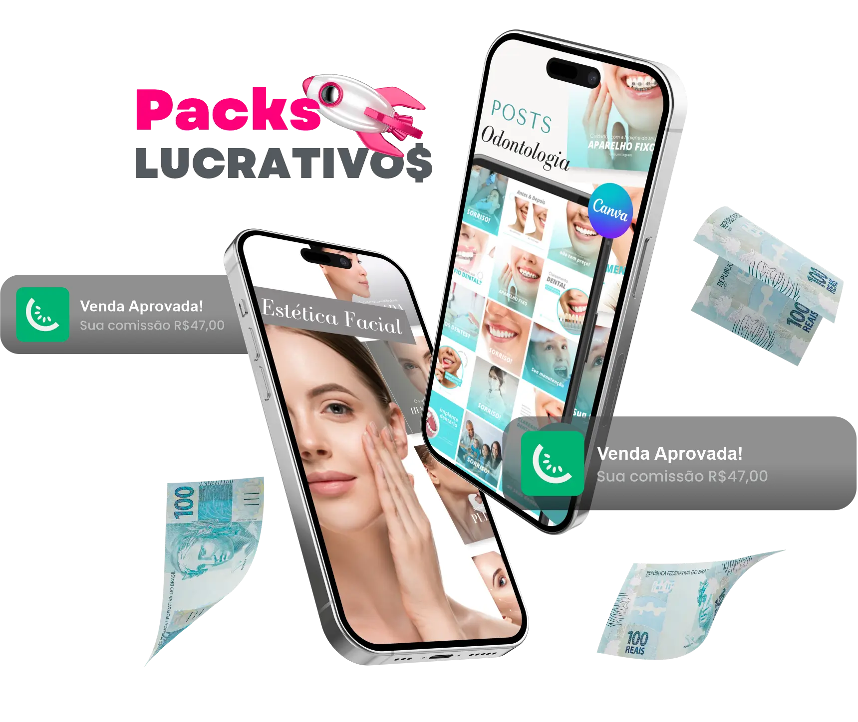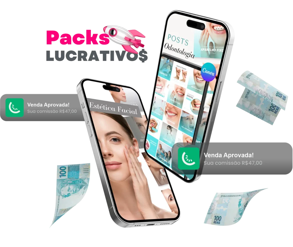 Receba também Modelos de Criativos já validados e 100% editáveis no Canva que eu uso para vender os meus Packs.